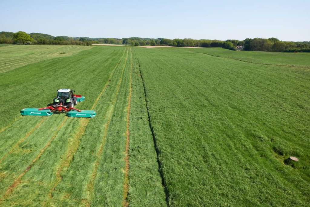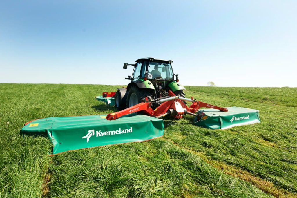 Combinații de cositoare cu discuri Kverneland cu greutate redusă și lățime mare de lucru.